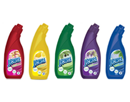 JEWEL est un liquide clair coloré agréablement parfumé. Il contient des acides, des bactéricides et des détergents. Il nettoie et enlève les tâches et désinfecte les vases de W.C. et urinoirs.
