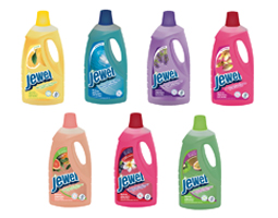 JEWEL lessive ultra est un liquide visqueux neutre clair. Cette lessive liquide contient des détergents et des enzymes de la meilleure qualité, spécialement développée pour le lavage de linge particulièrement sale de graisse et de protéine. Enrichie de conditionneurs d'eau et d’agents de blanchiment fluorescents pour l'eau douce ou l'eau dure. Agréablement parfumée, elle laisse une odeur propre et fraîche sur le linge lavé.